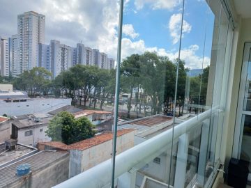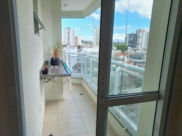 - 1 dormitório com armário planejado, cama e varanda com fechamento em vidro